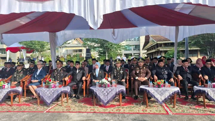 Upacara tersebut dipimpin langsung oleh Wakil Bupati Inhil, Yuliantini, S.Sos., M.Si., serta dihadiri unsur Forkopimda, para asisten, staf ahli, kepala dinas, kabag dan OPD di lingkungan Pemkab Inhil. Turut hadir pula para perwira Kodim 0314/Inhil dan pejabat utama (PJU) Polres Inhil.