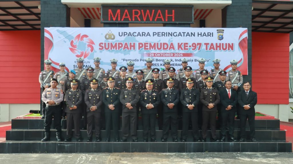 Sidik24Com. Meranti – Polres Kepulauan Meranti, Polda Riau, menggelar upacara peringatan Hari Sumpah Pemuda ke-97 Tahun 2025, bertempat di Lapangan Mako Polres Kepulauan Meranti, Jalan Lintas Gogok, Kecamatan Tebingtinggi Barat, Selasa (28/10).